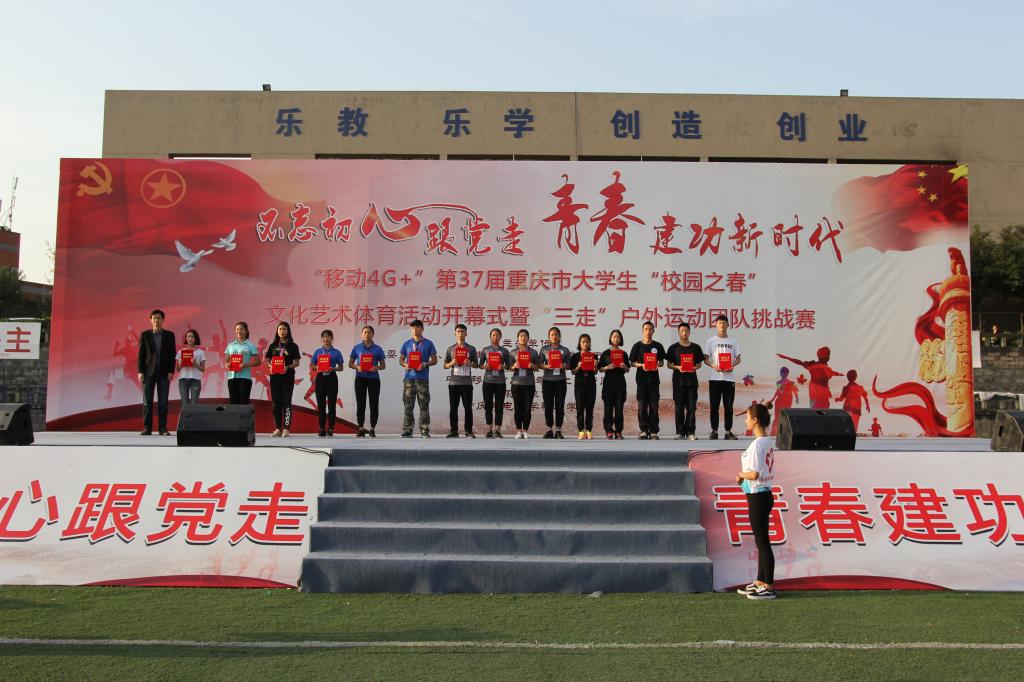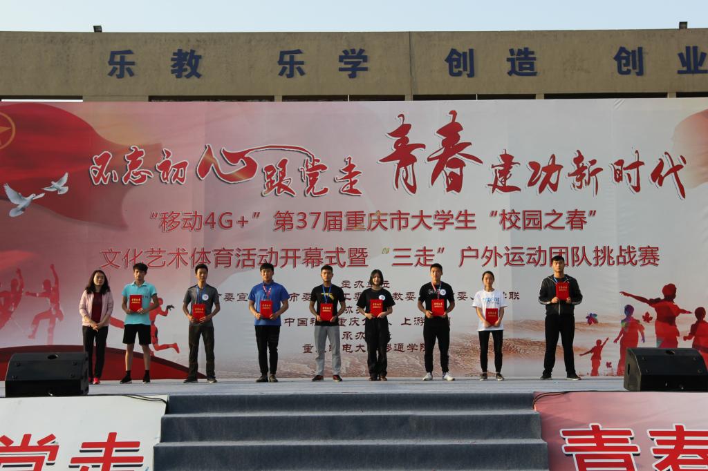 4月1日下午6点,重庆市第37届大学生“校园之春”文化艺术体育活动之“三走”户外运动团队挑战赛在我校圆满落幕。副院长王征、院长助理周伟出席闭幕式并为获奖团队颁奖。我校荣获团体总分第一名、3个单项第一名,1个单项第2名。