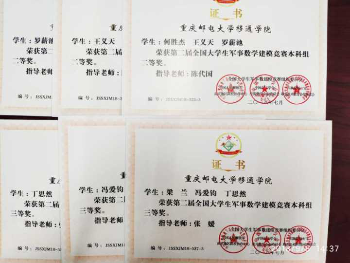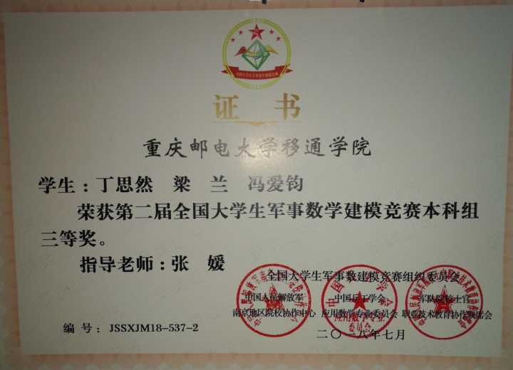 由中国兵工学会应用数学专业委员会、中国人民解放军南京地区院校协作中心、军队院校士官职业技术教育协作联席会共同主办的第二届全国大学生军事数学建模竞赛成绩揭晓,今年我校首次仅选派了3支参赛队参赛,经过四天四夜的刻苦钻研、团结协作,获得2018年第二届全国大学生军事数学建模竞赛二等奖1队, 三等奖1队的好成绩。