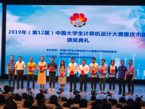 5月11日,2019中国大学生计算机设计大赛重庆市级赛在重庆师范大学涉外商贸学院成功举办,双体学子在比赛中发挥出色,斩获一等奖2项、二等奖2项、三等奖18项,连续三年摘得比赛桂冠。本次大赛也成为双体系有史以来参赛规模最大、获奖数量最多、奖项含金量最高的省部级竞赛。一等奖作品《致敬榜样力量》、《阳光小舍》,二等奖作品《区块链小课堂》、《School Smile》将由市赛组委会推送到国赛平台,代表重庆赛区参加8月的全国总决赛。