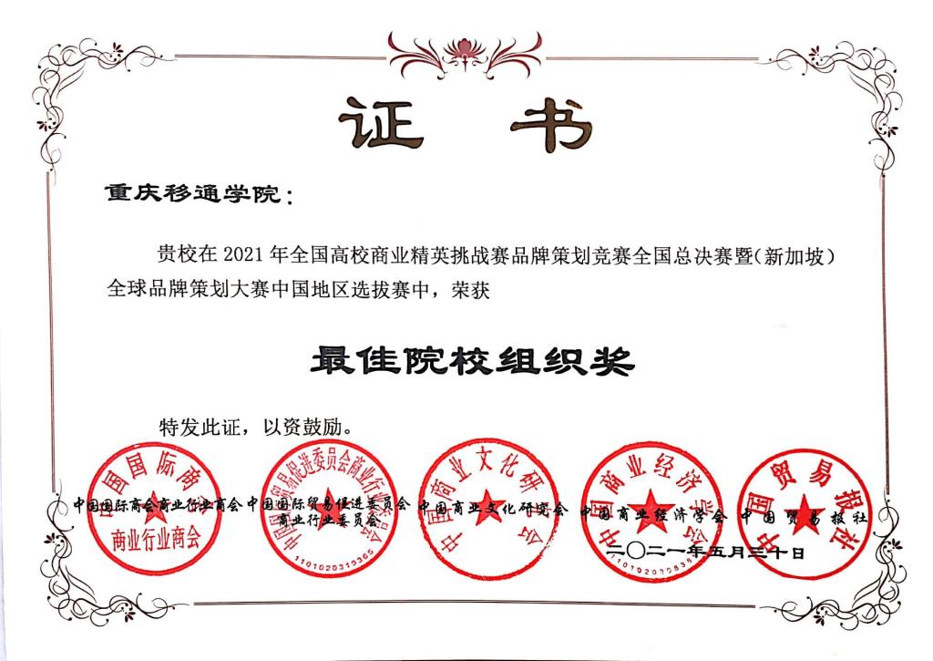 5月28—30日,2021年全国高校精英挑战赛品牌策划竞赛全国总决赛暨(新加坡)全球品牌策划大赛中国地区选拔赛在云南省昆明市隆重举行。经过与109所院校的240余支队伍激烈比拼,我校6支参赛队伍共计斩获二等奖四个、三等奖两个、最佳创意奖两个、最佳展示奖一个,李英杰、何晓旭、李丹、陈晓曼等9位教师荣获“最佳指导教师奖”,学校荣获“最佳院校组织奖”,创下我校在国家级赛事中入围队伍数量及获奖数量的历史之最。