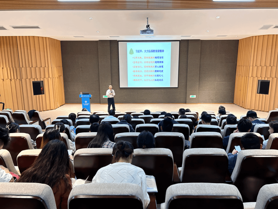 本次讲座,王教授聚焦深入学习习近平总书记提出的争做“四有好老师”,当好“四个引路人”,坚持“四个相统一”的重要论述,并结合自身30年的教学经验,通过生动的案例、详实的数据和独到的见解,分享如何落实在教书育人的具体行动中。王教授指出,教师作为学生成长道路上的引路人,应当关心学生成长成才,激励学生奋发图强,用爱心温暖学生;用行动感化学生;用真情激励学生。他表示,一个人遇到好老师是人生的幸运;一个学校拥有好老师是学校的光荣;一个民族源源不断涌现出一批又一批好老师则是民族的希望,他勉励青年教师们要树立高尚的职业道德与职业精神,做一名有情怀、有追求、有师德的新时代好老师。