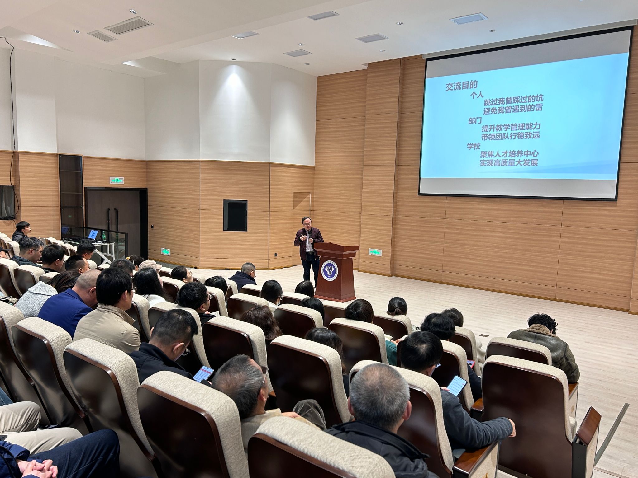 活动伊始,通信与信息工程学院院长李文娟对高飞处长的到来表示热烈的欢迎,李院长表示,高处长不仅在教学工作中取得了显著的成绩,而且在二级学院、职能部门都有工作经历,教学管理经验丰富,相信他的报告会为老师们带来新的启发和思考。