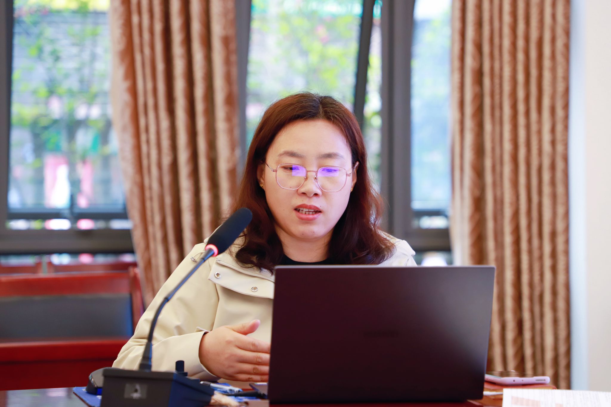 晋中信息学院校长助理栗艳龄针对“建设基本情况、存在问题、下一步计划”三方面进行学校合格评估教学建设汇报。她指出,学校在教学建设方面取得了积极进展,新增梳理教学二级目录,以加强教学材料支撑。同时对当前存在一些问题汇报情况,教学二级目录材料支撑合理性匹配性和支撑度等。为解决这些问题,栗艳龄提出了下一步的工作计划,包括增加对材料支撑的落实、设立材料要求、规范档案材料、材料梳理优化等。