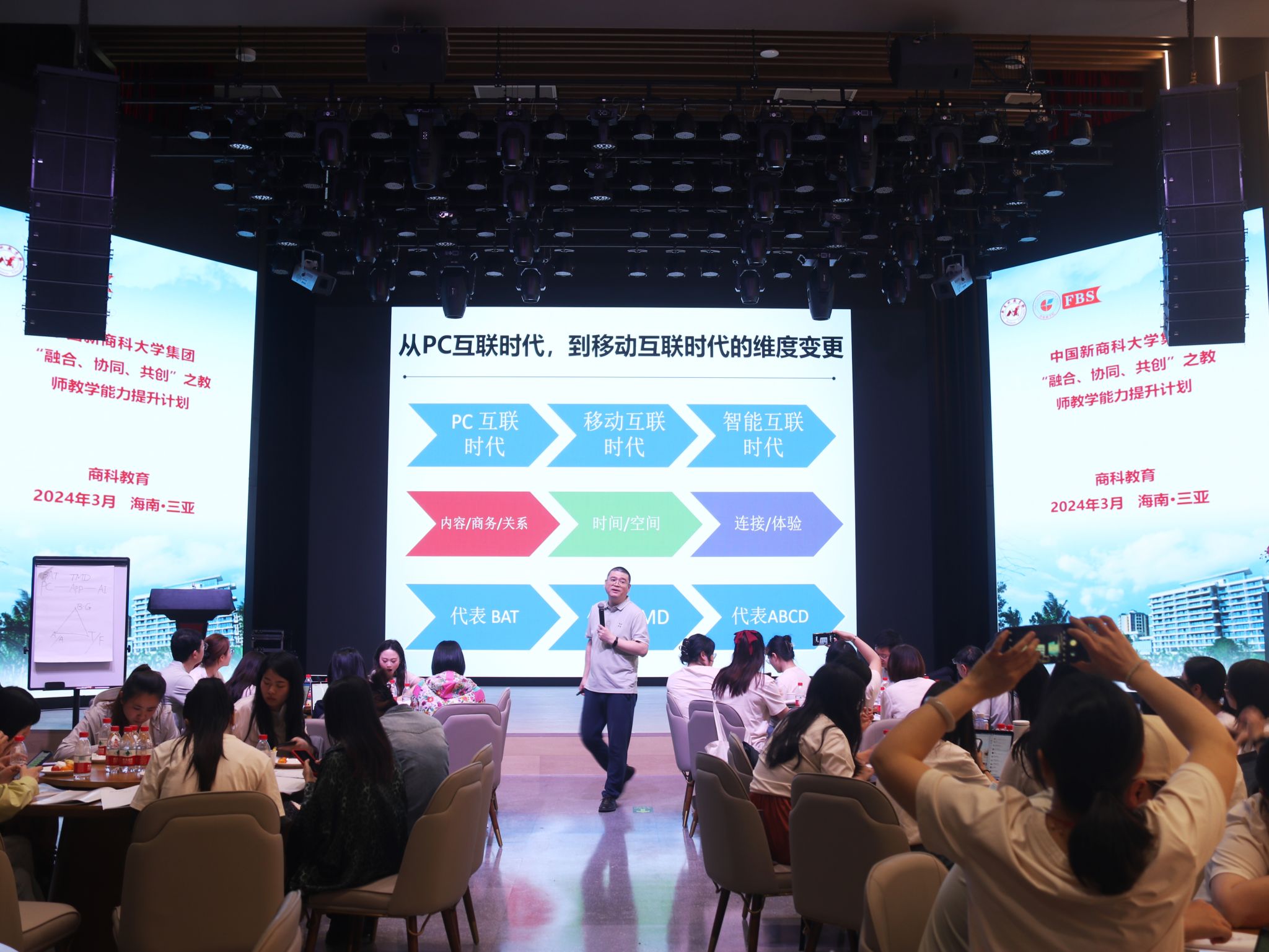 为切实提升商科教育板块教师的教学水平,拓展教师商业思维,强化商科教育板块的内涵建设与质量提升,2024年3月21日—3月24日,商科教育板块以“融合、协同、共创”为主题的教师教学能力提升培训活动在海南三亚天涯蓝海度假酒店圆满落幕。