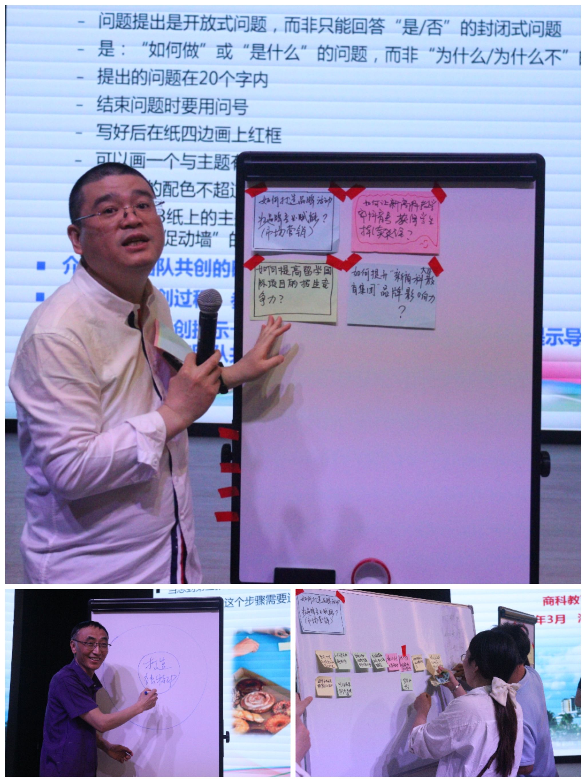 本次培训的第二次围炉讨论在淬炼•国际商学院副院长陈晓曼主持下,由丁士安院长、廖成林教授以及所有培训教师共同参与了以“两天的培训内容为参考,结合现有部门需求、自身岗位思考如何优化现有工作”为主题的讨论。在这次讨论中,老师们纷纷结合所学内容,思考自身工作中的核心冲突及解决方案。在讨论中陈晓曼副院长提到,老师们要持续深入阅读《梦想与实践》一书,学习董事长精神,深刻领会学校的办学定位战略和商科教育的意义,只有思想上提升工作中才能落实。丁院长针对老师们的疑虑同样提到了,要先改变思维方式才能落实实践,要以学生为中心,理解学生需求,以学生为导向,商科教育才更能够被学生们认可。