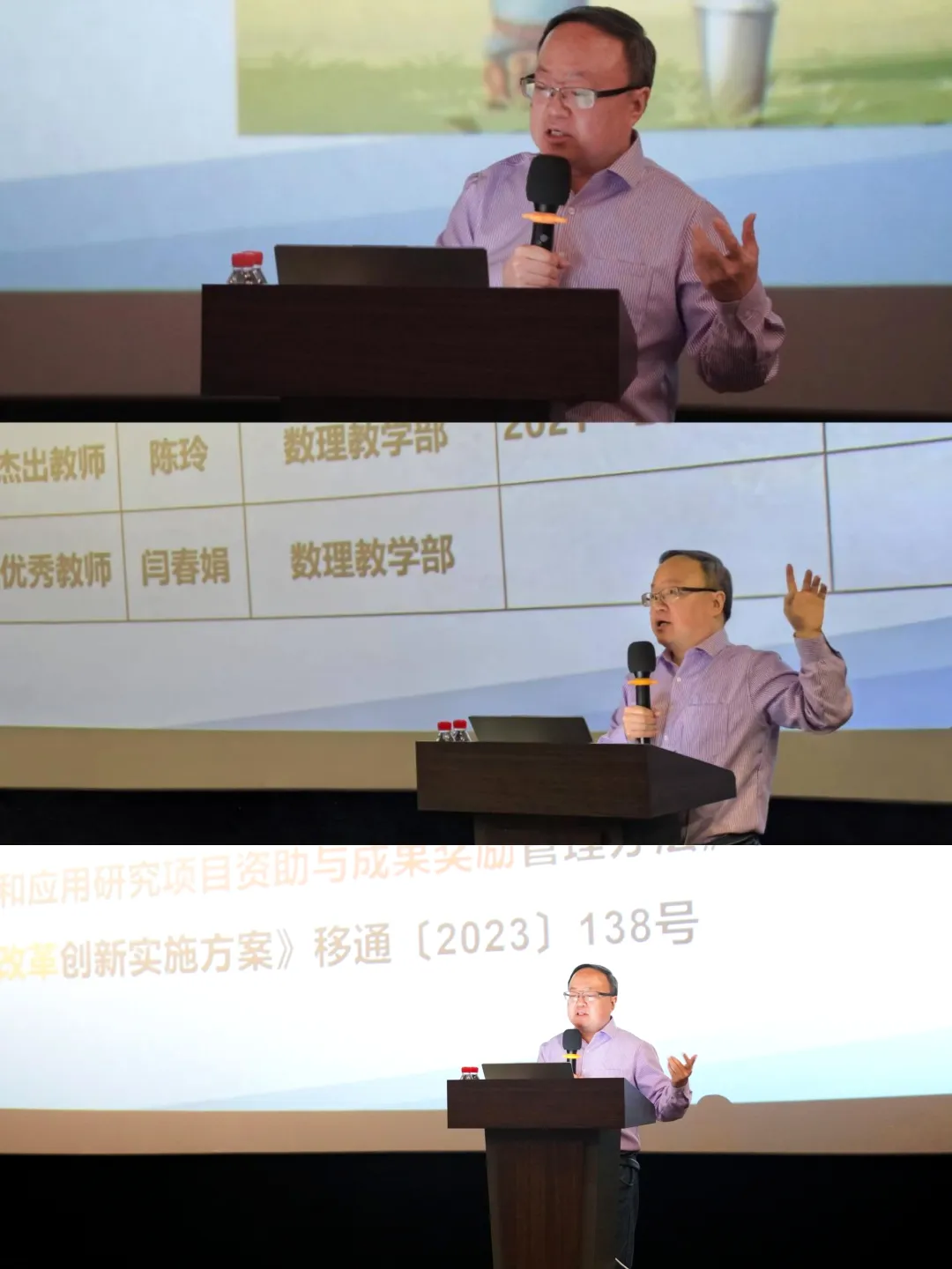 随后,高飞处长详细介绍了学校相关教师制度,强调“制度为本,遵规范”,要求教师掌握工作规范要点,将其作为在移通学院安身立命的根本。同时提及“竞赛为用”,阐述教学竞赛与学科竞赛的重要性,以及“职业路径”,鼓励教师重视职称晋升、岗位竞聘、远景百万、项目申报、职务晋升等多方面职业发展路径,并希望教师摆脱惯性躺平思维,跳出舒适区,以更广阔的视野面向未来。