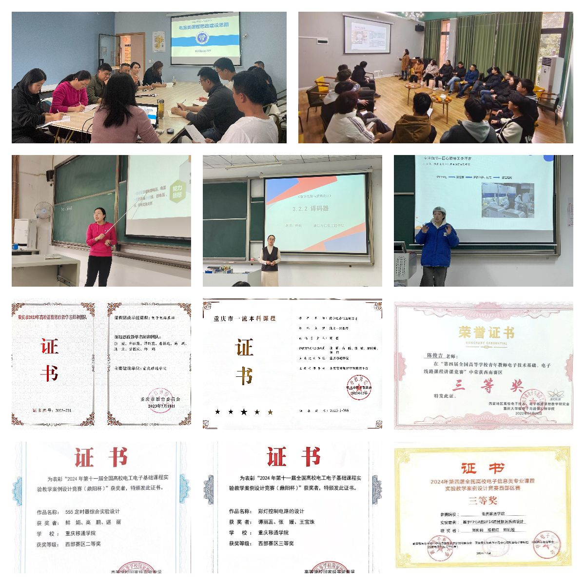 教研室以电子信息科学与技术专业建设为核心驱动力,以“领航定向、经验传承、技能传递、协同共赢”理念开展师资队伍的培养工作,形成了浓郁的教科研氛围,取得了丰硕的成果:牵头组建了三校四区虚拟教研室,获批重庆市一流课程2门、课程思政示范项目2项,校级一流课程5门,校级课程思政示范课程2门,设计性实验课程1门;承担省部级教科研课题20余项,其中重大科研课题1项,重点教研课题1项;获省部级民办教育优秀成果奖一等奖1项、二等奖1项;获校级教学成果奖一等奖2项、二等奖1项、三等奖1项;获省部级教学比赛二等奖2项、三等奖3项,校级获奖3项;发表论文80余篇;获得授权专利100余项。