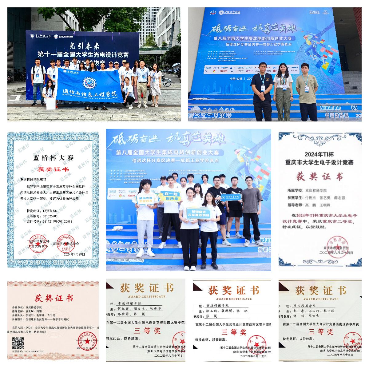 教研室秉承价值驱动双主体成长,以学生发展为中心,以学科竞赛为抓手创新实践活动,不断优化和更新教学内容,激发学生的创新思维和实践能力。在学生培养方面取得了显著成效,指导学生参加全国大学生集成电路创新创业大赛、全国大学生光电设计大赛、“大唐杯”全国大学生移动通信5G技术大赛等A类学科竞赛,获省部级以上奖励50余项。