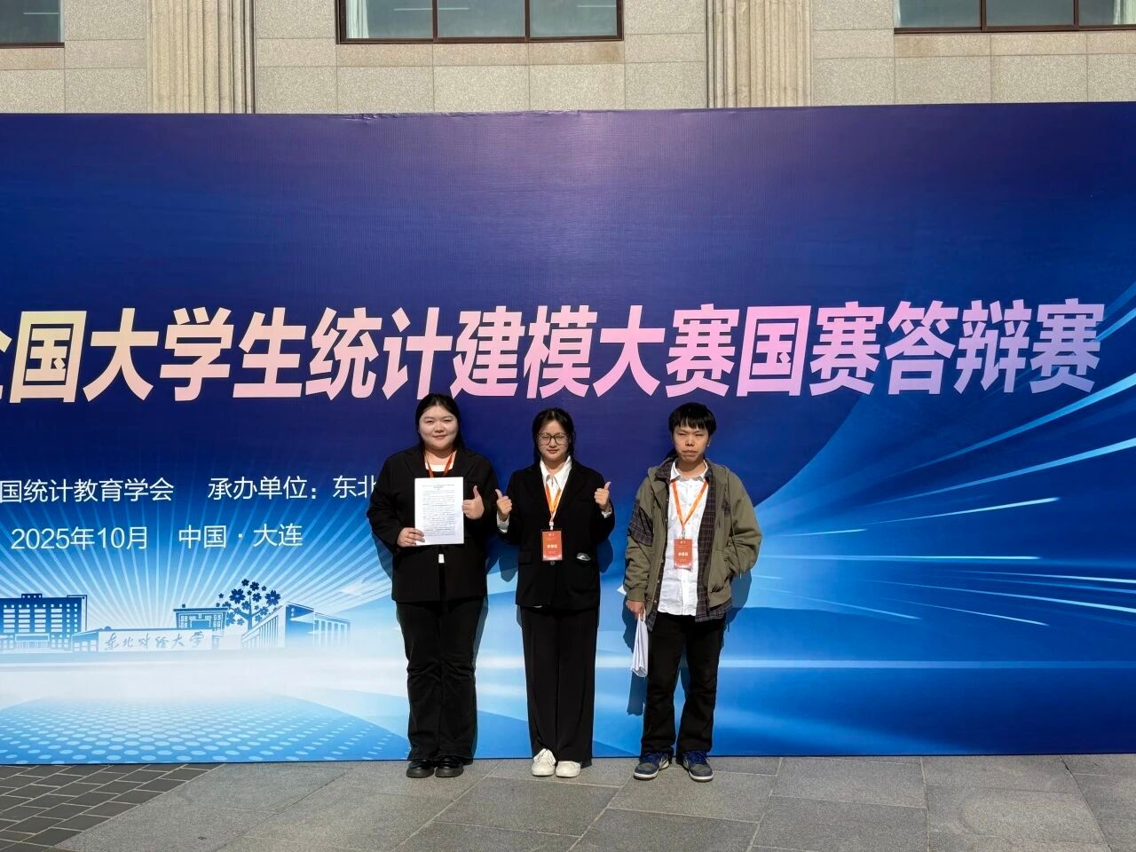 近日,2025年(第十一届)全国大学生统计建模大赛国赛答辩赛在东北财经大学圆满落幕。学校远景学院积极组织参赛,由数理教学部教师赵玉娟带队指导,信息安全学院学生刘秋峰、大数据学院学生李定灿、魏高飞组成的代表队,凭借出色的表现荣获全国总决赛本科生组一等奖,实现了重庆移通学院在该赛事的历史性突破,同时也是本届大赛中获得全国一等奖唯一一所民办类院校。自2023年该赛事入选《2023全国普通高校大学生竞赛分析报告》竞赛目录以来,重庆移通学院是唯一在该项赛事中获得全国一等奖的民办高校。