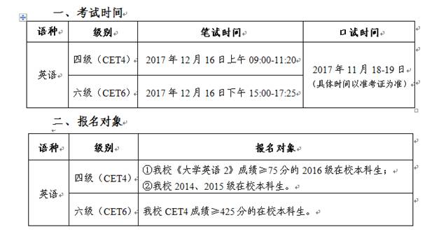 根据上级主管部门要求,以及学校的实际情况,为做好我校英语四六级(CET)考试报名工作,现将有关事项通知如下:
