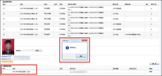 步骤六:点击确定后会弹出报名成功的窗口如下图所示,点击“确定”。