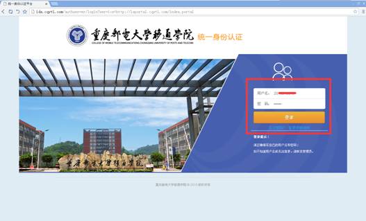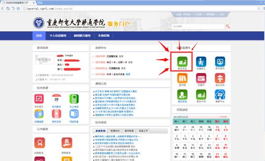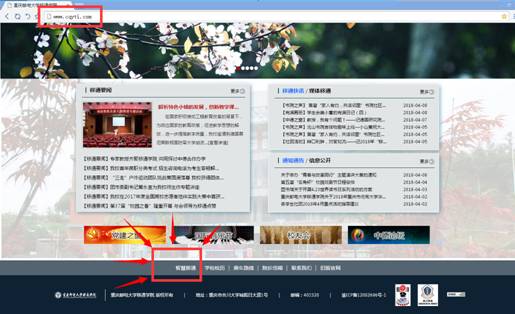 步骤一:登录重庆邮电大学移通学院官网http://www.cqyti.com/,进入“智慧