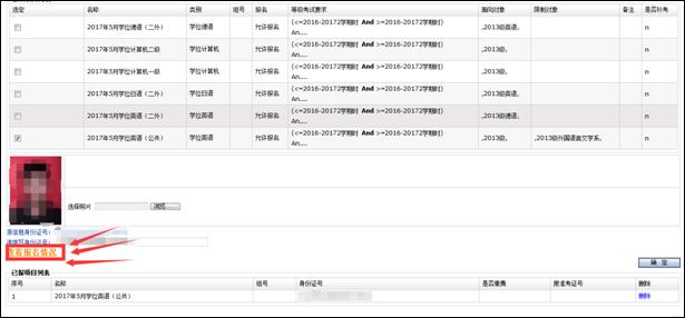 步骤五:看清楚考试科目和报名的条件限制,选择自己需要报考的科目并在前面的方框上打勾,确认照片及下方的身份证等信息无误后再在下方输入自己的身份证号码,点击“确定”即可。