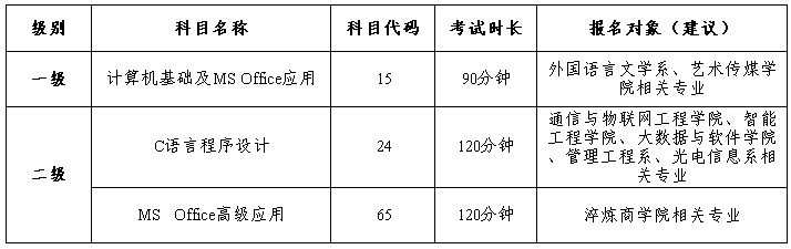 全国计算机等级考试(NCRE),是由教育部考试中心主办,用于考查应试人员计算机应用知识与技能的全国性计算机水平考试体系,现将我校报名相关事项通知如下: