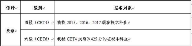 2.学生在报名时,笔试只能报名一个语种和级别,即英语四级、英语六级,只可二选一。若未按要求报名,将被取消考试资格。