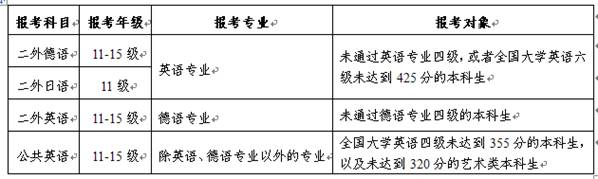 (1)11级英语专业学生,可自行选择二外德语或二外日语二者之一报名。