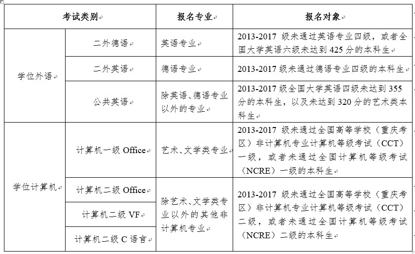 2.根据《重庆邮电大学移通学院学士学位授予工作实施细则》,符合以下条件的2017级本科生可免考本次考试;符合以下条件的2013-2016级毕业生可在本次考试报名期间直接提交学位证书申请: