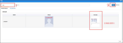 4.进入审核界面,辅导员须认真检查学生照片,确定无误后,选择“通过”选项,点击“确定”,完成审核。