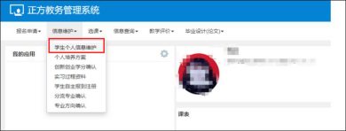 1.学生登录教务系统后,选择“信息维护”→“学生个人信息维护”。