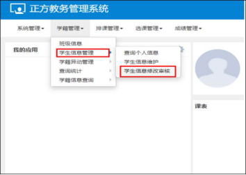 2.在菜单选项,选择“学生信息管理”→“学生信息修改审核”。