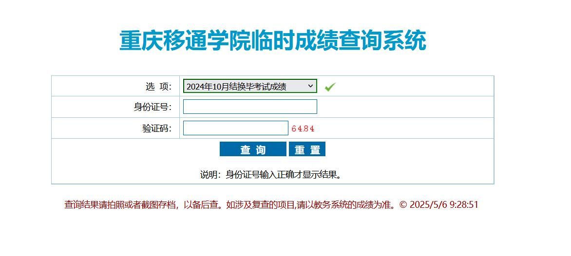 在“选项”中按需选择“2025年04月结换毕考试成绩”,输入身份证号码(最后一位为“X”的需大写)和验证码,即可查询相应成绩。【特别提醒:毕业论文(设计)成绩将于答辩后另行发布】。