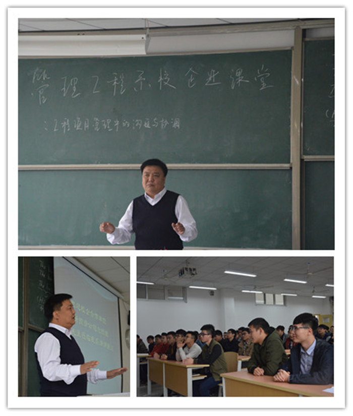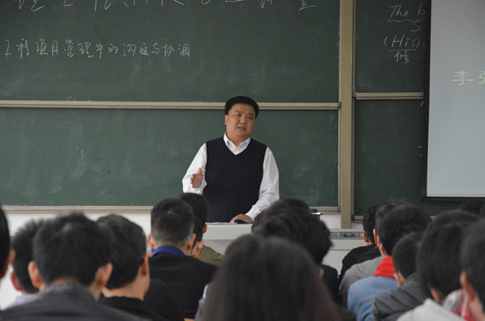 2016年11月17日上午10点,管理工程系有幸邀请到校企合作单位——重庆蕴丰建设工程有限责任公司的董事长李强先生莅临我系,与以往不同的是,这次是企业高层直接进入课堂,采取“上课”的方式与同学们座谈交流。本次课李强先生带来的主题是“工程项目管理中的沟通与协调”,旨在引导大家树立正确的“三观”。