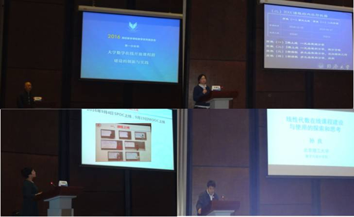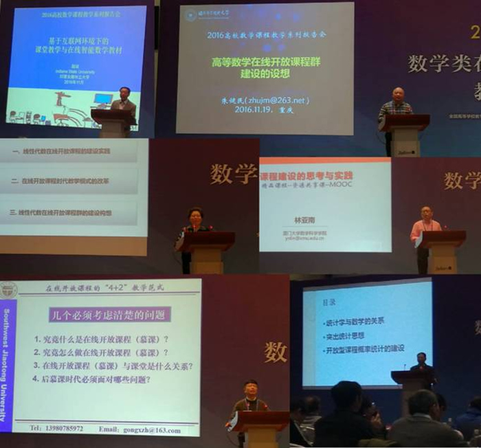 大会上,专家们分别以《概率统计》、《高等数学》、《高等代数》等课程为例,将他们的在线开放课程建设及改革创新与大家进行了分享。美国印第安纳州立大学赵诚教授在《基于互联网环境下的课堂教学与在线智能数学教材》报告中与大家分享了国外微课的发展与广泛应用,并指出微课可以使得各种教学技巧及教学规律潜入其中,丰富教学资源等优点。