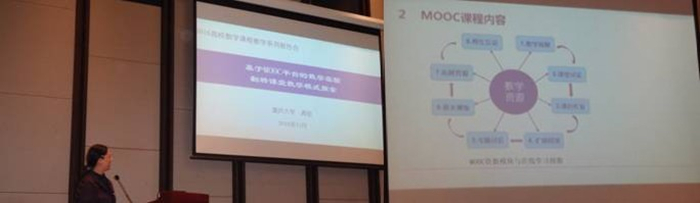 重庆大学教授龚劬教授针对数学实验数学建模课程做了精彩的报告,龚劬教授在《基于翻转课程模式下的数学实验教学探索》中,详细讲解了重庆大学“数学实验”课程建设从精品课程到资源共享到MOOC的转变,提出小步子原则教学,先将知识进行分块逐渐增加难度,突出建设翻转课程模式中人体化教育原则,教师分组负责翻转课堂模式不同板块,最后分享了重庆大学基于翻转课程模式进行教学的课程效果。这次会议报告整体已凸显MOOC的七大优势:“微课程、沉浸性、名师化、大规模、互动性、翻转课堂、资源共享促进教育公平”。