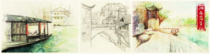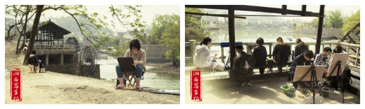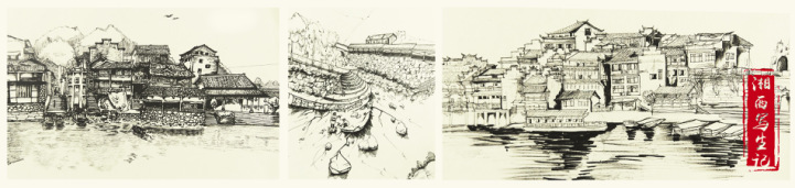 本次写生于3月31日开始至4月7日结束,历时8天,边城是本次写生行程的第一站,短短的三天时间,师生们便彻底迷上这个民风淳朴的世外桃源。城边有河,河中有岛,岛上有林,林中有碑,碑中有文,登上边城白塔,世界闻名的边城小镇尽收眼底。沿河而造的吊脚楼、淳朴善良的当地人、宁静秀丽的山水,无一不启发着学生们的创作灵感。