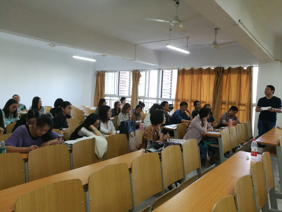 课后,牟老师向在座的老师们阐述了她的授课理念和思路:“语言学习是技能的学习,课堂应以学生为主,所以要想尽一切办法让他们尽多地开口和参与进来。”对此,大家表示赞同。公共外语教研室教研组长张旭宁老师认为,本堂课活动内容丰富,形式具有可操作性,设计的抢答环节带动了几乎所有学生,成效明显;专业负责人曾泽军老师亦表示认可分组抢答这一创新形式,不仅刺激了学生的竞争意识,也培养了他们相互协作的精神。而牟老师对于课堂活动的难易度把控适度,也成为亮点之一。外语系吴世银主任肯定了牟老师作为新进老师为大家呈现的这堂公开课的成功之处。他指出,大多数学生通常都会觉得习题讲解课枯燥无趣,这也是诸多老师深感头疼的问题,如何有效调动学生学习的兴趣和课堂参与的积极性是值得我们深入研究和积极探索的永恒话题。与此同时,想要上好任何一门课,老师们都必定要舍得花心思和功夫去设计、雕琢。当我们用心打造出一套自己认可的且能吸引学生的教学材料与教学方法时,这无疑有助于在课堂上搞好师生互动及课堂管理,实现教学效果。吴主任再次提醒各位老师,切忌死板套用教材所附光盘内容,一成不变。