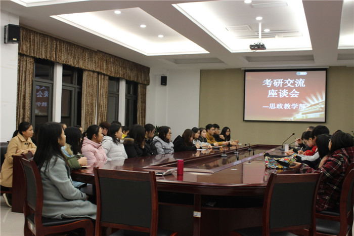 为增进同学们对考研的了解,帮助同学们树立考研的目标和信心,12月6日晚,思政教学部在107会议室召开了师生考研交流会。参加本次交流的有思政教学部邹建平、吴亚坤、宋珊等8位老师以及2015级、2016级考研学生代表。本次会议由邹建平老师主持。