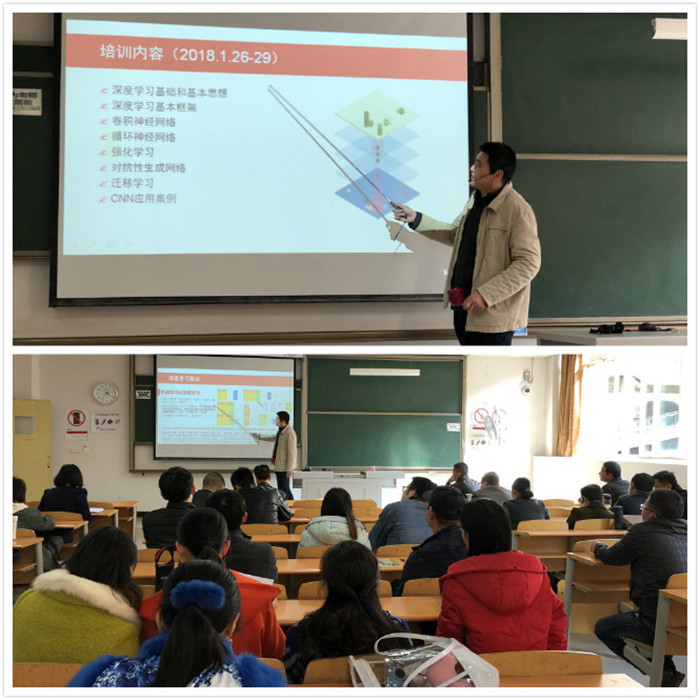 会议内容包括三个方面。首先,毛期俭主任对我系在2017年开展的教学工作做了一番总结,然后对2018年将要开展的教学工作做了详细的部署。之后陈赟老师就“深度学习核心技术开发与应用”的培训向大家做了汇报。