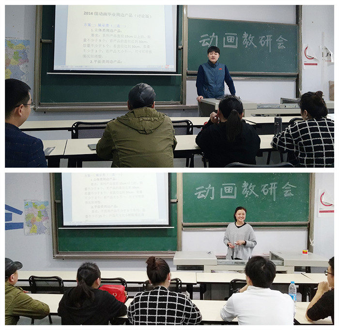 林珍香老师,针对新学期的教学计划做了发言,动画教研室经过2年的发展,教员趋于稳定,各位老师在相关教学领域有了突破进展,相互间配合默契,教学方法不断创新,动画专业学生在近年举行的学院奖艺术节比赛、大广赛、游戏设计大赛、广交会等活动中都获得丰硕成果,但应当戒骄戒躁,继续保持良好势头,紧密结合学校定位,发展自身特色,进一步提升教学质量。林老师主要从接下来的写生展、毕业展入手,与大家共同探讨制定细则。