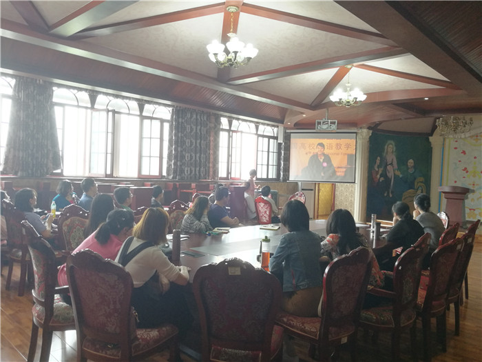 李静老师的分享包括两个部分,首先她为大家播放了一段来自第四届“外教社杯”全国高校外语教学大赛全国总决赛二等奖获得者王丽莉老师的决赛授课视频,不仅为老师们揭开了“外教社杯”全国高校外语教学大赛这项全国规模最大、级别最高、影响最广的全国性英语教学专项比赛的神秘面纱,更让老师们直观地感受了一把一堂优秀的参赛课的风采,以及对于比赛方式、授课内容和流程乃至比赛场景都有了清晰的概念。之后,李老师就自己曾参加两次重庆赛区比赛的经验和心得与大家进行了诚恳分享。她提到,赛课选题最好具有一定的趣味性和互动性,这样老师容易切入,学生也有话可说;老师与学生应该搭建有效沟通,包括眼神肢体的互动,课堂提问难度的把握以及课件制作的板式、字体等讲究,都在不同程度上影响着双方的感受和反应;老师们在授课过程中,要善于发现自己的长处,比如制作精美优秀的课件、板书板画、能歌善舞等等,完全可以在课堂上不吝施展出来,都能非常有效地吸引学生的注意力,活跃课堂氛围。卢老师也畅谈了自己的参赛经历,并且提醒大家说在赛前准备时要注意课件等资料的格式、备份等,以免临场出现突发状况影响自己的状态;老师授课过程中的教学目标应该鲜明,内容主次平衡,与学生保持互动,当心别把课堂变成“一言堂”;此外,评委越来越关注教师的理念里除了对学生语言知识本身的要求,有没有注重对学生人文素养及批判思维的培养,因此我们的老师在设计课堂环节时,都应该把这些考虑进去。