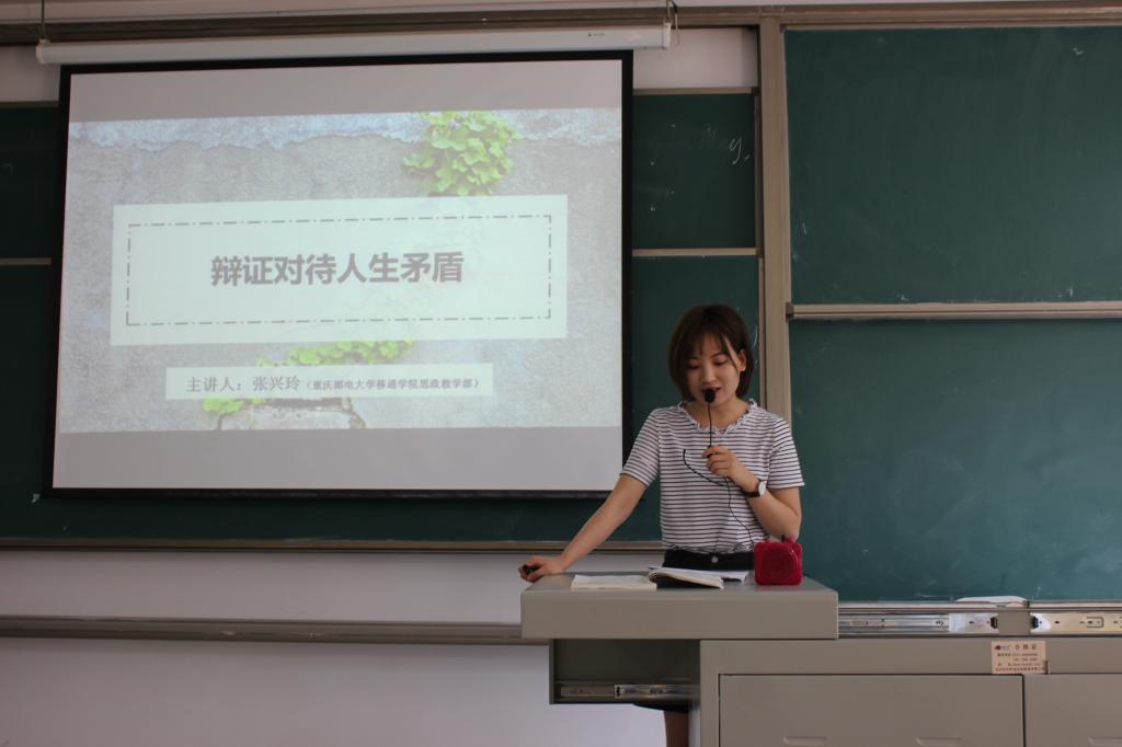 本次教学展示由2017年新进教师张兴玲老师承担。教学观摩课作为思政教学部常态化教研活动的一部分,是思政课教师探讨教学规律、研究教学方法、推广教学经验的重要平台,也是青年教师课堂教学水平自我提高的重要途径。张老师本次讲授的课程题目是《辩证对待人生矛盾》。为上好本次观摩课,教师课前作了充分的准备,细心研课,虚心地向老教师“取经”;在授课的过程中,精心设计了课堂的导入,逻辑结构清晰,层次分明,注重引导学生思考。