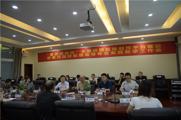 会议邀请重庆市文化委员会网络处处长吴明勇、西南大学新闻传媒学院院长虞吉致辞,以影视编导专业实践教学模式与创新为主题,分别来自重庆大学的范倍、重庆邮电大学的李曼、长江师范学院的韦济木、重庆师范大学的张楚、西南大学的赵剑等相关教师发言。