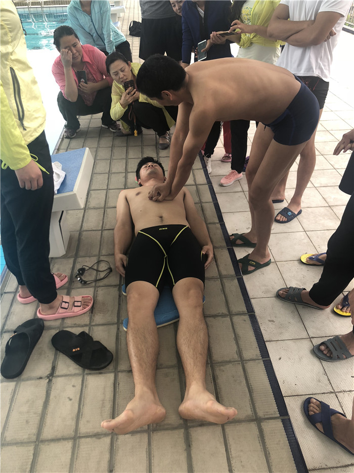 本次教研室活动主要分为心肺复苏技术练习、水中救人技术(拖带)练习、和岸上扔圈技术练习以及蛙泳技术练习四个部分。在心脏复苏技术练习的过程中,老师们在现场对发生游泳溺水时的紧急情况进行演示,体育教研室的老师们专业且投入,把演示当做了真正的应急情况处理。在后面的水中救人技术(拖带)练习和岸上扔圈技术练习以及蛙泳技术练习中,老师们将同学们的安全放在心底,积极交流,认真钻研每一项技术,规范每一个动作,力求将每一个项目做到最好。