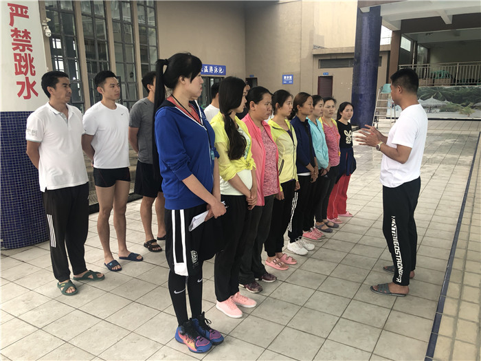 为进一步提高教师的业务素质,切实保障学生游泳课安全,竞技体育中心体育教学部利用教研室活动的时间,在教研室主任刘玉林老师的组织下,在我院 C区游泳池开展了“游泳救生”主题的教研室活动,老师们通过相互学习和探讨,围绕几种学生在游泳时可能遇到的紧急突发性问题进行现场演练,同时也警醒老师们在今后的工作中,将学生安全放在首位,努力提升教学质量。