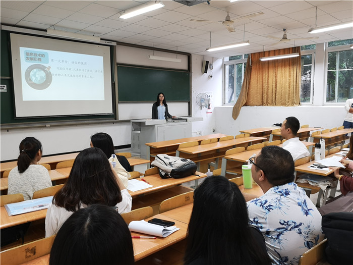 本次会议的第二部分是由新教师向全体教师进行公开课展示,接受大家的批评与指导。承担《信息技术与社会》的甘运丽老师为大家展示了人类社会信息技术的发展历程(上),着重通过对五次信息技术革命的讲解,让学生了解人类社会在漫长的历史中,信息技术是如何推动社会不断进步的,以及信息技术对未来社会将产生怎样的影响。甘老师向大家展示完公开课后,在座各位老师积极踊跃发言,给甘老师提出了有效的意见与建议。老师们首先对甘老师进行了肯定,普遍认为甘老师在讲台上的语速、音量及台风都很不错。同时老师们也对甘老师本次公开课提出了问题,包括PPT制作、板书、教学前言问题的缺失等。