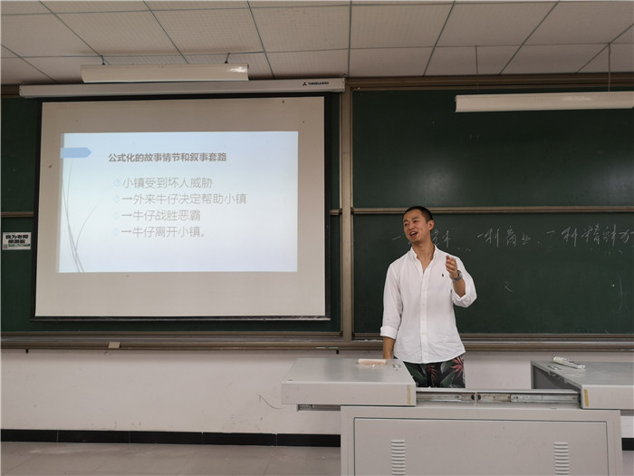 讲授《经典电影赏析》课的王礼迪老师在公开课上为大家展示了好莱坞电影里的类型片包括歌舞片、喜剧片、黑帮片、西部片、爱情片等,特别是通过对西部片这一类型片的讲解,让大家了解到,类型片就是用来解决人在现实生活中的情感焦虑,类型元素让电影看起来像一部类型片,精神力量让电影是一部类型片。“类型”是电影和观众心照不宣的默契,做类型片必须要揣摩观众心理,以弥补他们缺失的精神力量。王老师的讲解引人入胜,老师们听得意犹未尽。在王老师展示完公开课后,老师们普遍觉得王老师的知识储备非常丰富,讲课的内容非常精彩,但语速过快、讲台上动作太过随意,缺乏与学生的互动等。