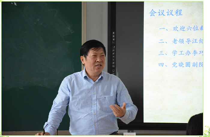 会议第二项内容,原智能工程学院院长汪纪锋教授从“感悟、感谢、思考、希望”四点出发,追忆智能工程学院的成长历程,从2006年自动化系建系到2018年智能工程学院成立,一路风雨,一路前行,筚路蓝缕,在开拓中进取,在成长中壮大;汪纪锋教授表达了对教育事业的崇高追求,对移通学院、对智能工程学院不可割舍的情怀,感谢每位教师的陪伴!并寄语全院教职工,聚力凝智,开拓进取,把智能工程学院的建设与每一位教师的事业发展和职业追求相联系,立足“三位一体”培养模式,以学生为中心,促进学院发展。