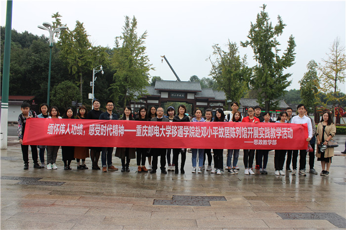 时间砥砺信仰,岁月见证初心,今年是改革开放40周年,为踏寻先辈足迹、铭记奋斗历程、传承革命精神,进一步增强广大师生的爱国意识,同时也为了深化思想政治理论课实践教学改革,提升思想政治理论课教学质量,提高育人实效。10月13日上午,思政教学部全体教师携优秀学生代表共40余人前往我校爱国主义实践教育基地——四川广安“邓小平故里”进行了一场意义深远的红色教育实践活动,用实际行动缅怀一代伟人。