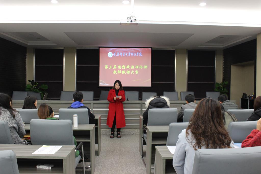为全面贯彻落实全国高校思想政治工作会议,贯彻落实教育部新时代全国高等学校本科教育工作会议相关文件精神,深入推进我校思想政治理论课教学改革,展现移通学院思想政治理论课教师风采,思政教学部特于11月30日在行政楼601会议室举办第三届思想政治理论课教师微课大赛。