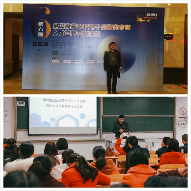 今年11月9~11日,李卫东老师去昆明参加了“第六届全国高等学校电子信息类专业人才培养高峰论坛”。李老师介绍说,此次论坛举行了一系列主题报告和专题报告。上海交通大学毛军发院士、教育部高等学校电工电子基础课程教学指导委员会主任王志功教授等各高校和企业的知名学者、专家做了11场主题报告,传达了教育部和教指委的关于“新时代高教40条与新工科建设”、面向新工科的电子信息类专业培养方案以及课程改革等工作要求和部署,并就人工智能国际化创新人才的培养与实践、人工智能/物联网时代的高科技人才培养等主题进行了广泛的交流。