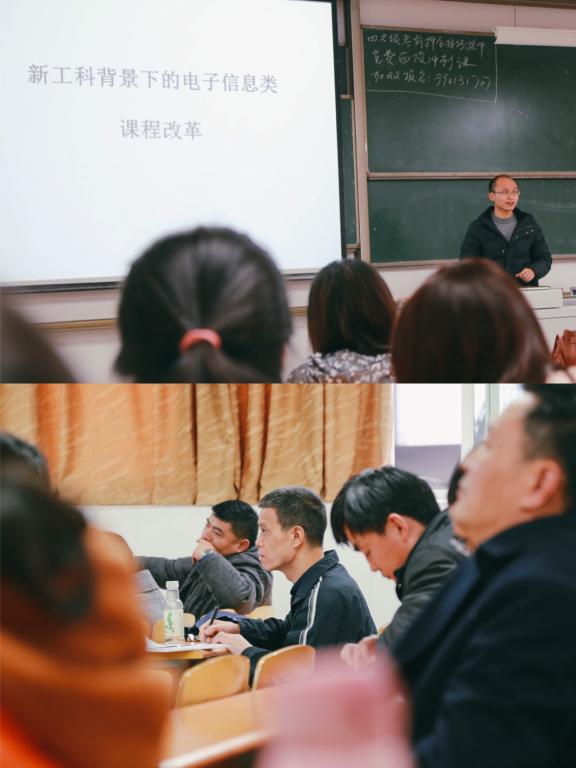 接着,王玮副教授就“新工科背景下的电子信息类课程改革”为大家做了汇报。王老师从什么是新工科、为什么要建设新工科、如何建设新工科三个方面为大家进行了介绍。他分层次、跨角度地讲解了北京大学、清华大学、东南大学和哈尔滨工程大学等学校的先进做法,其中东南大学将数字电路与EDA相融合、哈尔滨工程大学的基于口袋实验室的新型人才培养模式非常新颖,让人眼前一亮。
