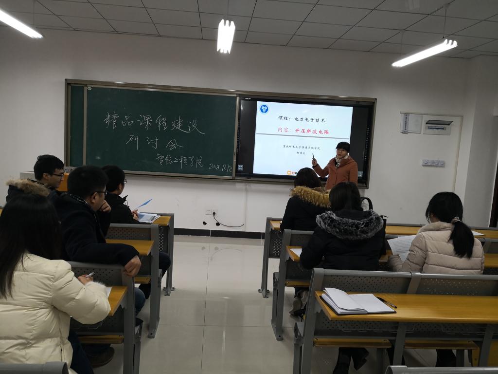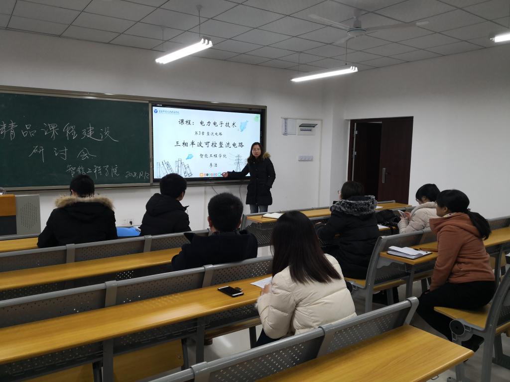 12月5日下午和12月12日下午,《电力智能控制基础》教学团队联合电气工程教研室连续两周召开精品课程建设总结与推进研讨会,教学团队负责人李洁老师主持会议,教学团队全体成员和电气工程教研室全体老师参加了这两次会议。李洁老师首先对《电力智能控制基础》教学团队对前期工作进行了总结,为更好推进《电力电子技术》在线课程建设工作,教学团队需不松劲、不停步、重整行装再出发,计划在本学期内再完成5个高质量教学视频制作。