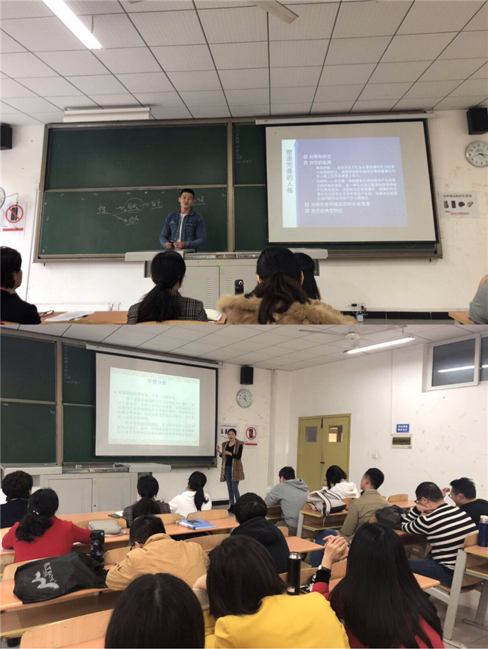 首先,新进教师杨正宇作公开课演讲。杨正宇老师主要担任《幸福课》的教学任务。本次公开课,杨正宇老师以“人格(自尊及其相关概念)”这一节为载体,介绍了人格的构成,包括四个部分即自尊和自恋、自恋的起源、当前社会环境自恋的社会因素以及自恋的典型特征。重点讲解了自恋的典型特征,如夸大的自我、唯我独尊、对赞美的渴望、渴望融合、逃避接触等等。全场老师全神贯注听课,杨正宇老师用其扎实的专业功底将课程内容融入身边的案例,深入浅出,既通俗易懂又引人思考。