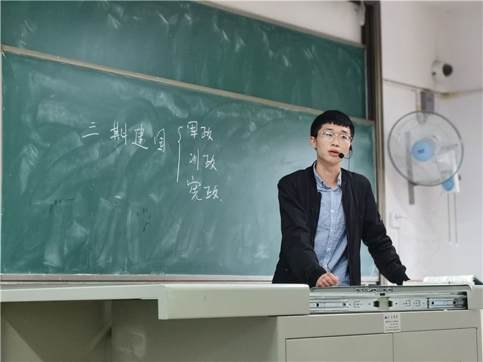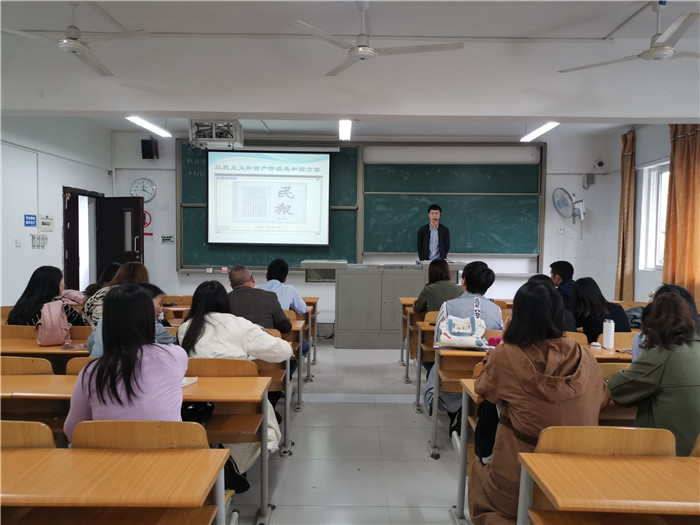 王玉东老师本次讲授的主题为《三民主义》。在授课过程中,王老师紧扣主题,分别从“民族主义、民权主义、民生主义”的提出背景、内涵、意义、进步、不足等方面逐步展开,整个讲课条理清晰,内容熟练,详略得当,做到了论从史出,课堂氛围较好。针对王老师的授课情况,政治理论教研室主任李阳老师指出,王老师的授课完成度很高,进步明显,但在课程内容的时间安排上还有所欠缺,应更突出重点,无需在知识点上平均安排授课时间。杨贵珍老师指出,在课程讲解过程中,重难点问题要多结合历史材料,史论结合,切忌简单问题复杂化。