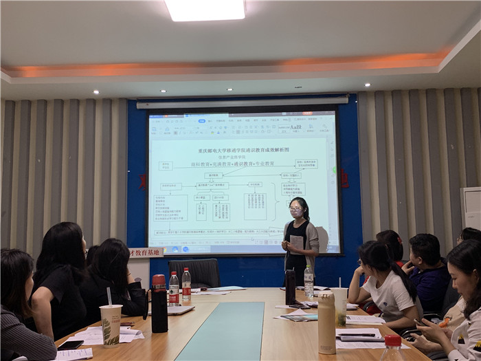 紧接着,各位老师汇报自己搜集的资料及与小组老师讨论的内容。邓露露老师首先发言,将他们课程小组讨论出的模型图呈现给大家,并进行了详细的解说,金光美教授和颜昌义老师分别进行了补充。随后是罗磊老师课程组,罗磊老师和李璐琳老师主要是搜集了美国和日本知名高校通识教育目标模型图为大家讲解设计灵感,为各位老师带来了新的思路和灵感,并结合我校的通识教育目标展开激烈讨论。