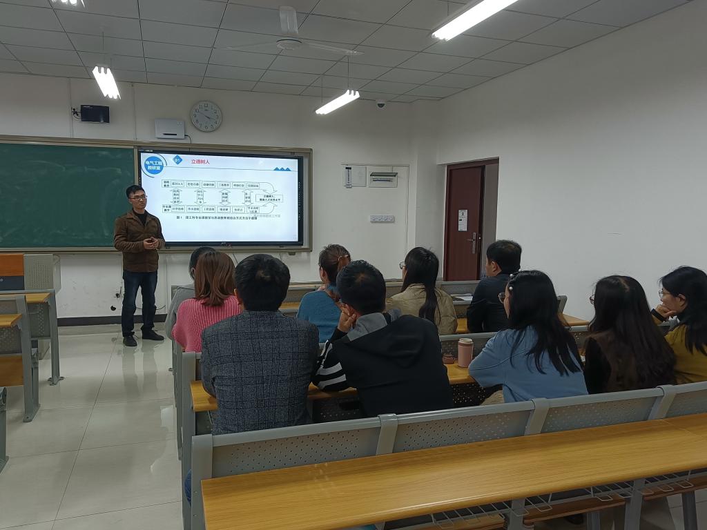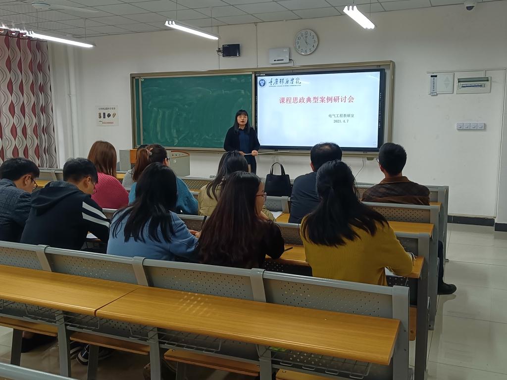 为了能够更好地落实立德树人根本任务,充分挖掘专业课程蕴涵的思政元素,提升课程思政育人实效,4月7日下午,智能工程学院电气工程教研室在竹逸A202开展了课程思政典型案例研讨会。此次研讨会由教研室主任杨佳义主持,电气工程教研室全体教师参加。
